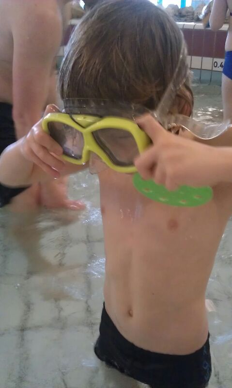 Klaar voor de zwemles met kleren aan.