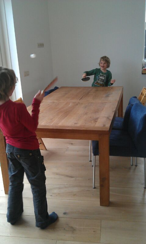 Pingpongen op de tafel.