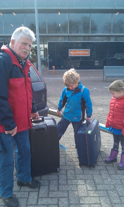 We brengen opa en oma naar het vliegveld.