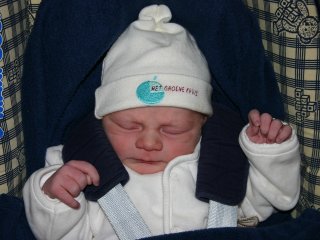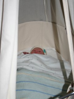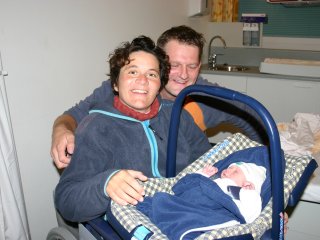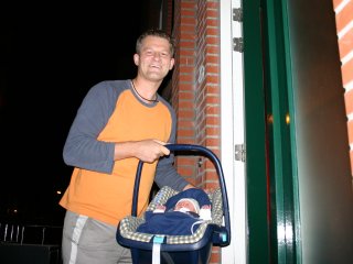 Klaar om naar huis te gaan. Het is half 2 als we het Parthuis verlaten. Voor het eerst in de maxi-cosi.