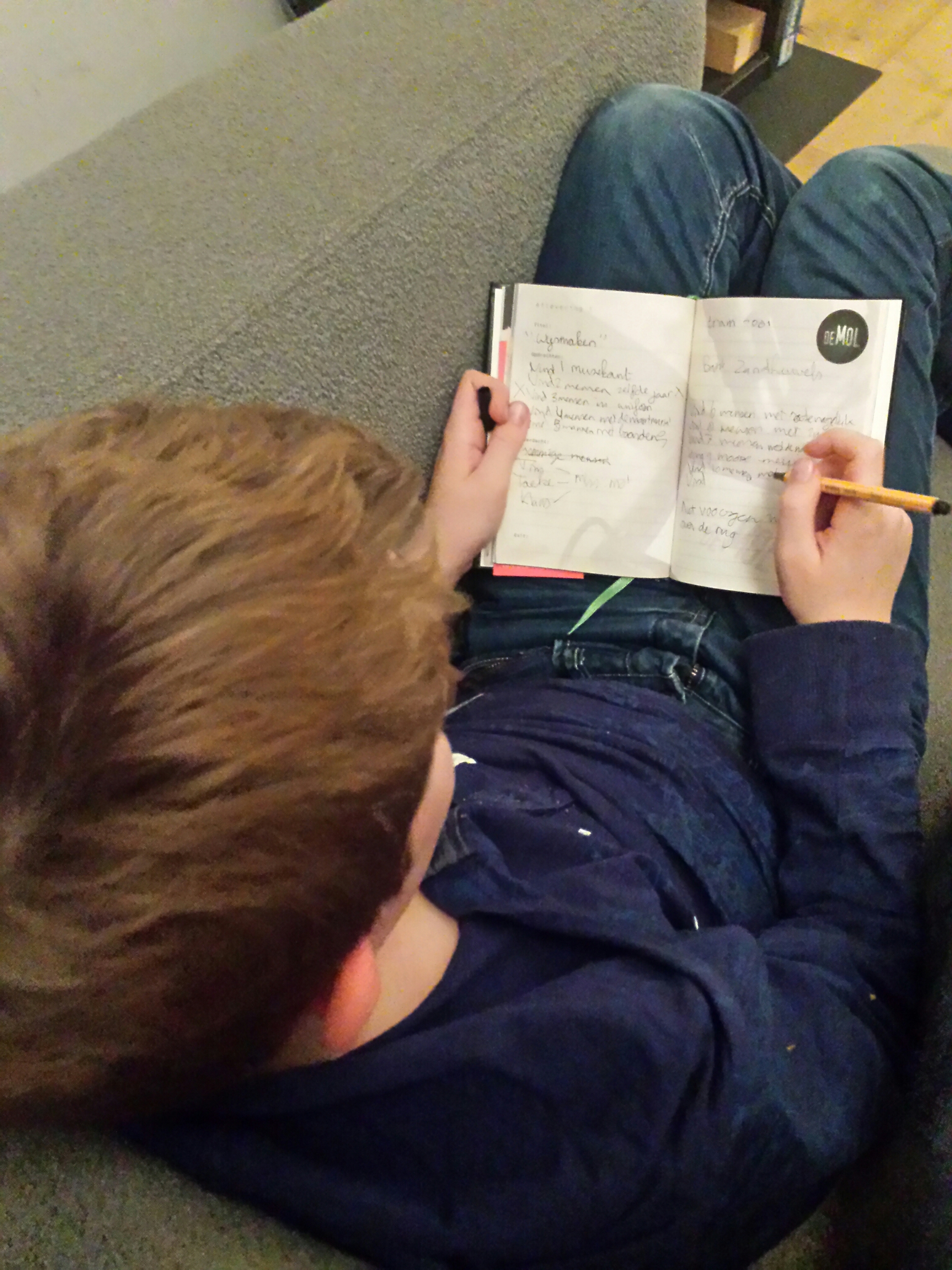 We zijn los. Ik maak aantekeningen in mijn molboekje.